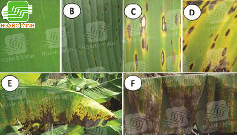Về sau đốm mọc loang ra, trở màu đen, đồng thời xuất hiện ở mặt trên của lá chuối. Đến thời kỳ giữa, đốm sọc loang rộng thành hình bầu dục màu nâu, xung quanh có quầng màu vàng.