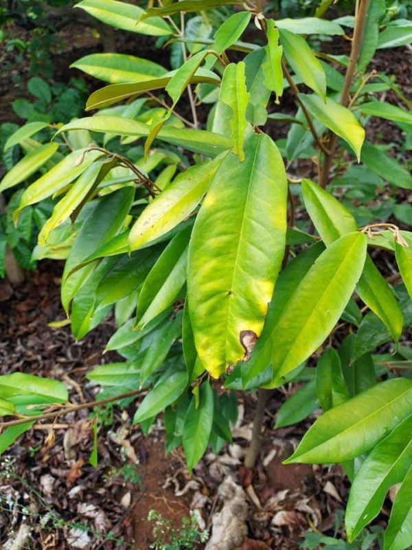 Sầu riêng bị thán thư có thể quan sát biểu hiện đặc trưng trên lá
