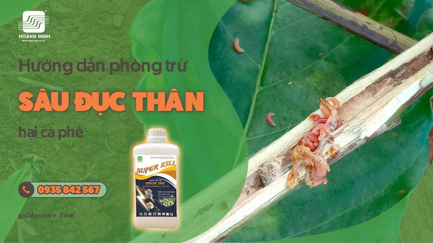 Đối với tác nhân sâu đục thân hại cà phê, Hoàng Minh khuyến nghị bà con sử dụng sản phẩm Superkill để phòng trừ. Superkill là thuốc BVTV có khả năng thấm nhanh, diệt mạnh và hiệu lực kéo dài.