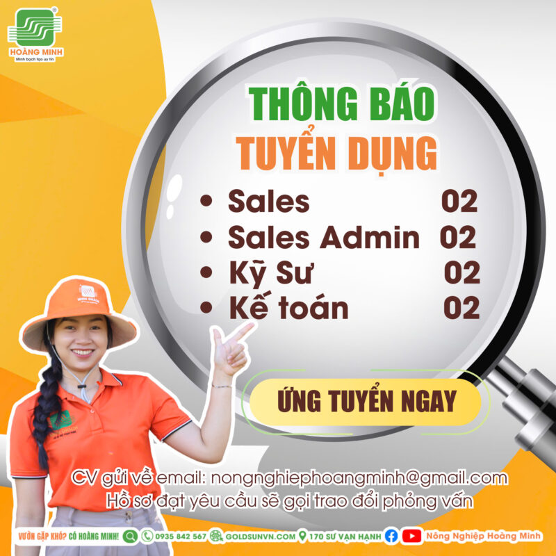 TUYỂN DỤNG KỸ SƯ NÔNG NGHIỆP, SALES, SALES ADMIN, KẾ TOÁN