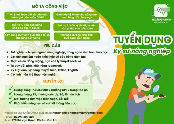 Hoàng Minh tuyển dụng kỹ sư nông nghiệp thực chiến